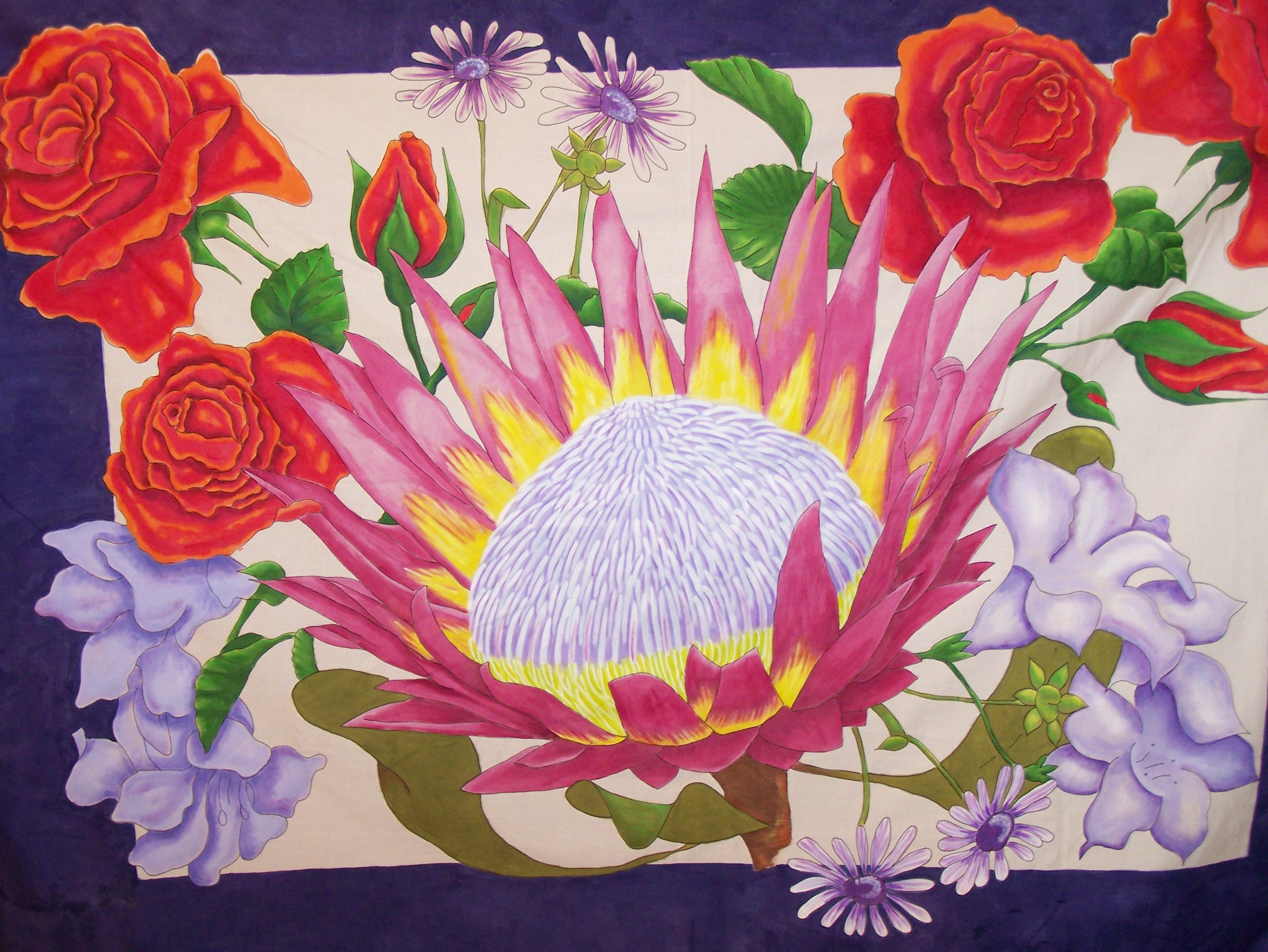 What did I study? Nothing relating to art and design in any way shape or form. I picked a 'career' in stead. As this blog is about fulfilling my dreams to be a textile designer, I will not mention my 'day job' here. Somehow, whilst at uni though, I remember spending hours on my bedroom floor, painting canvasses, missing the odd boring class (man, how did I not catch on?!) and eventually designing and painting T-shirts. This ended up a great move because, students started to stop me on campus and placed orders with me, word of mouth spread and it quickly became a great way to help to pay for my studies. Still, did not catch on.